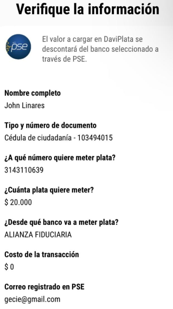 Dinero enviado a Daviplata.