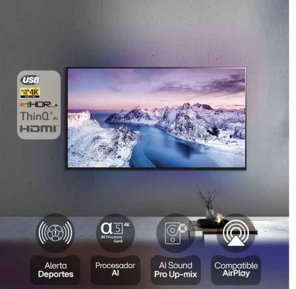 El procesador α5 IA 4K Gen6 mejora el televisor LG UHD para brindarte una experiencia inmersiva *HDR10 Pro no es un formato propio de LG Dynamic Tone Mapping aplicado cuadro por cuadro para contenido HDR10.